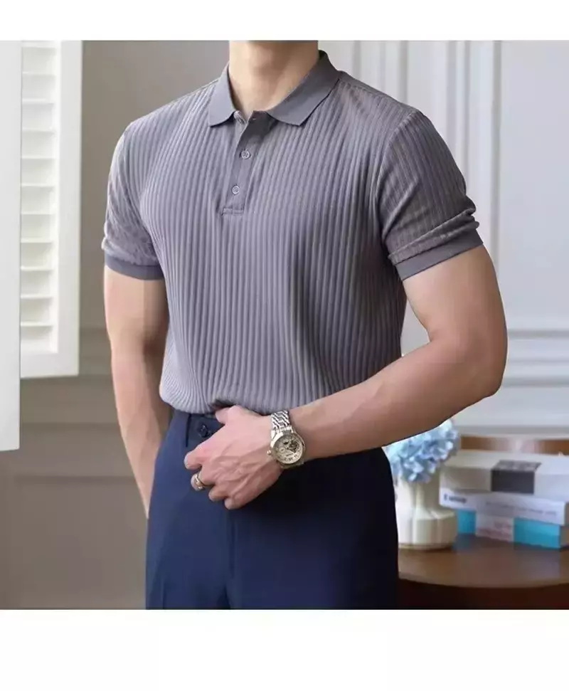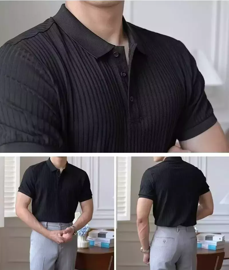 A knitted polo designed for understated sophistication. The vertical ribbing adds depth, while the relaxed fit ensures all-day ease. Perfect for layering or wearing solo, this versatile staple balances comfort with timeless appeal.